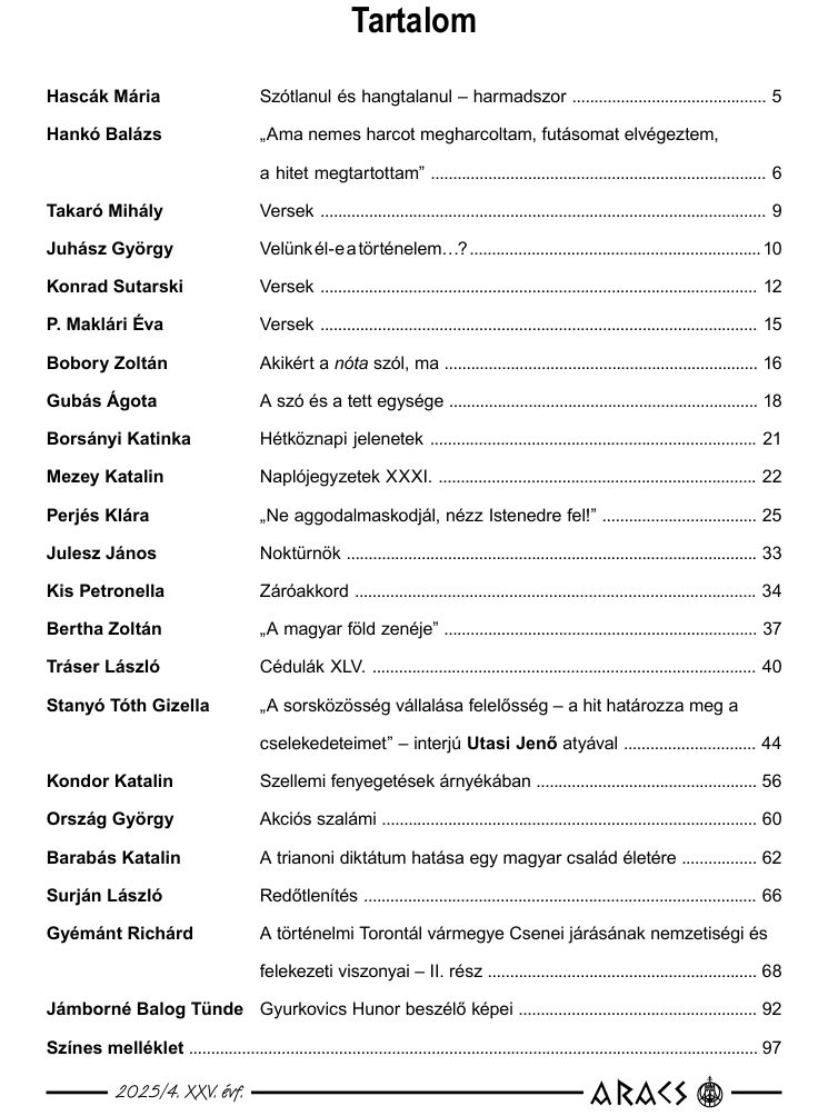 ARACS délvidéki közéleti folyóirat, Aracs folyóirar - 2025 Aracs folyóirat 2025/4 A DÉLVIDÉKI MAGYARSÁG KÖZÉLETI FOLYÓIRATA 2025. október 23. XXV. évfolyam, 4. sz Aracs folyóirat 2025/4Size: 4,2 MBVersion: 2025-4Letöltés 4 Downloads